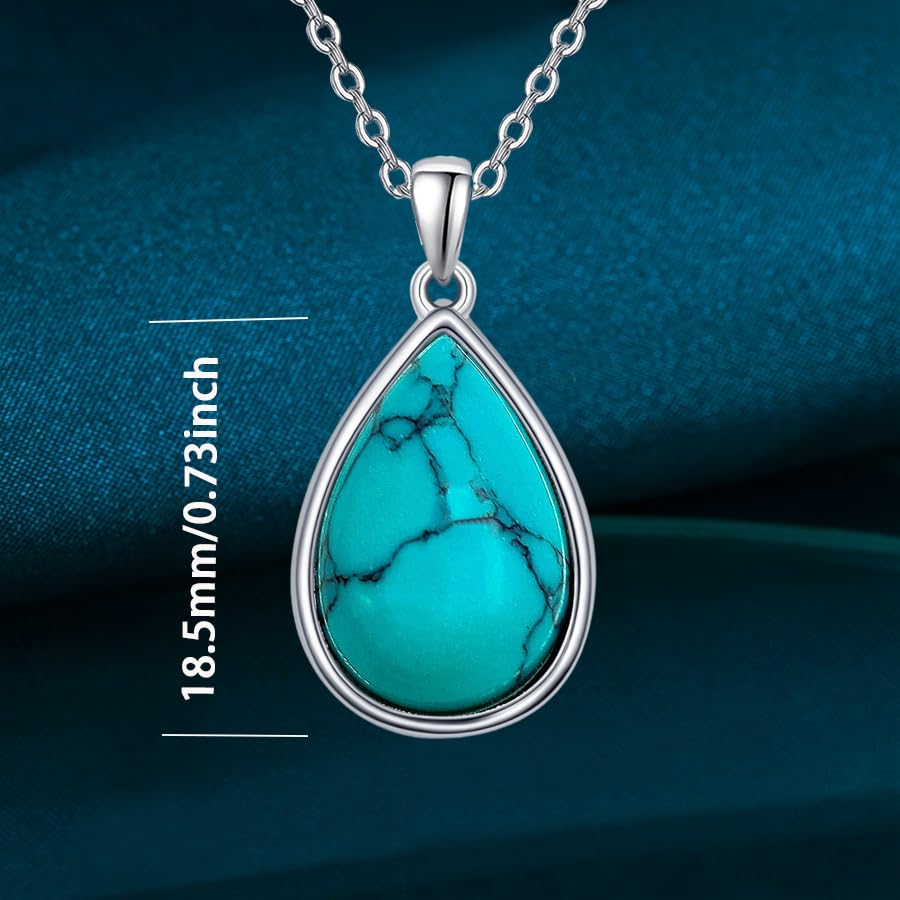 Genuine Turquoise Necklace for Women S925 Sterling Silver Pear Cut Turquoise Pendant Jewelry Gift for Mom Her 1