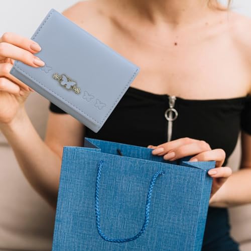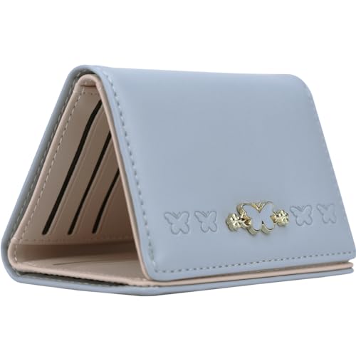 Cute Blue Wallet for Women and Ladies Small Minimalist Butterfly Design Leather Coin Purse with Credit Card Holder and ID Window Kawaii Travel Cash Wallet for Ladies 5