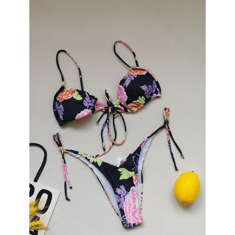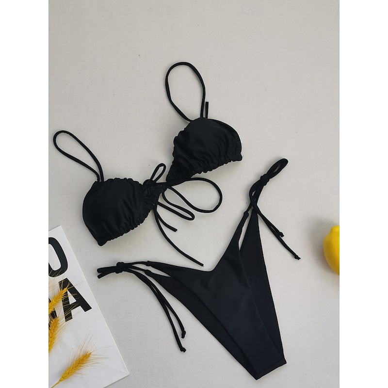 More information about Women's Swimsuits Bikini 2 Piece Thong Swimsuit Backless Slim Vacation Fashion Solid Color V Neck Sleeveless Bathing Suits