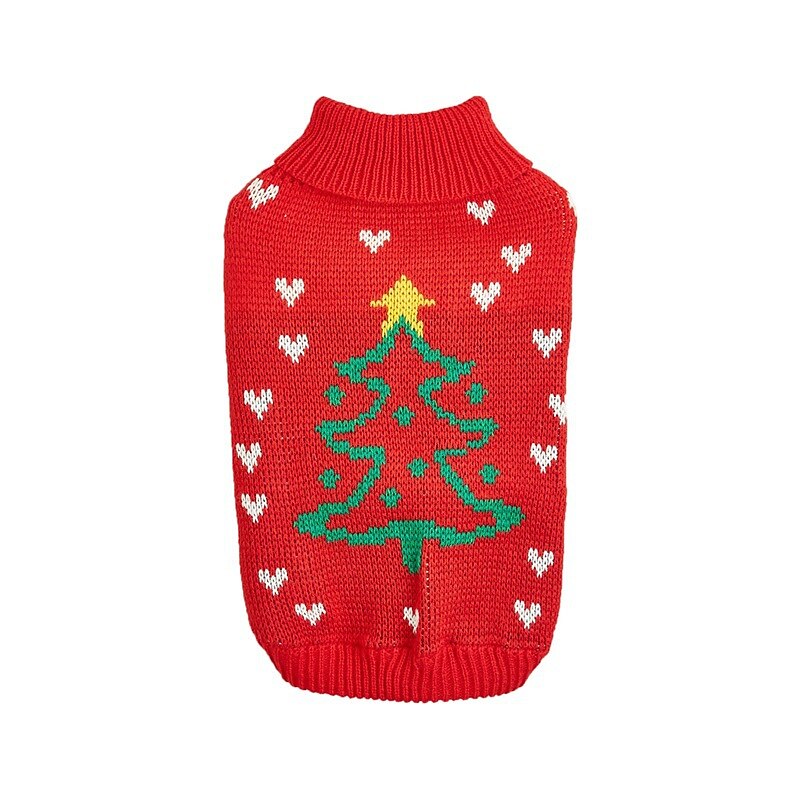 Why Choose Christmas Dog Clothes High Collar Red Joyful Christmas Tree Snowman Star Autumn Winter Pet Sweater?