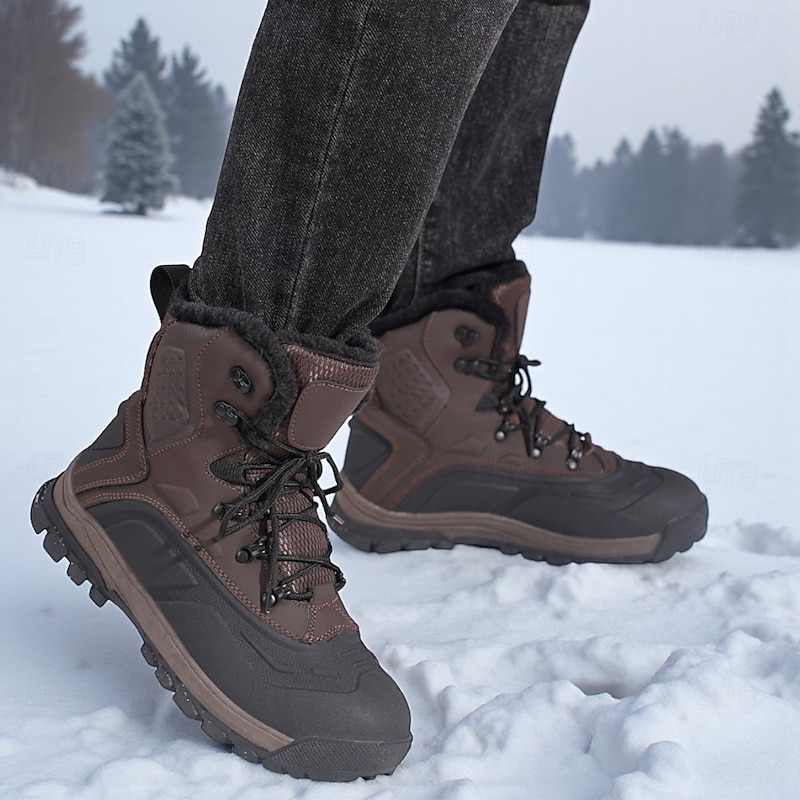 Men-s Winter Snow Boots with Fur Lining, Waterproof Insulated Warm Lace-Up Outdoor Shoes for Cold Weather 1