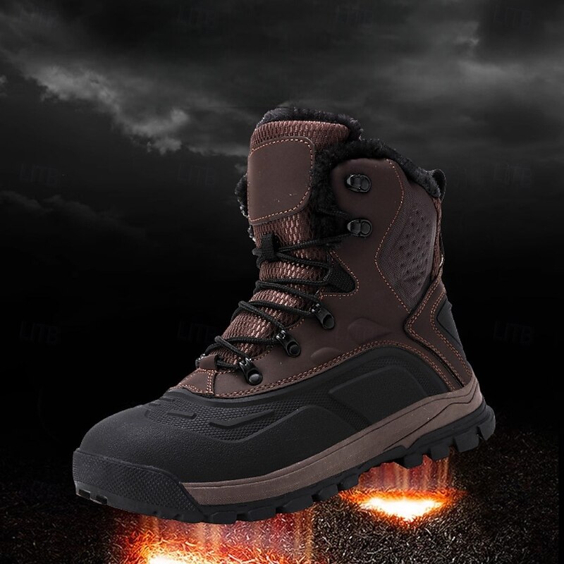 HOT ! Men-s Winter Snow Boots with Fur Lining, Waterproof Insulated Warm Lace-Up Outdoor Shoes for Cold Weather
