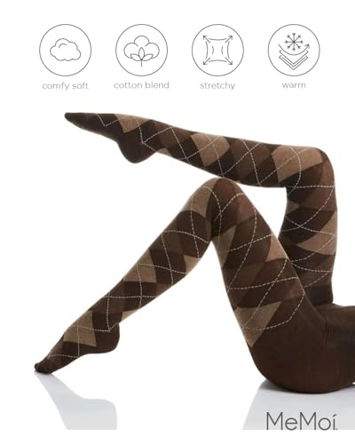 MeMoi Classic Argyle Cotton Tights for Women, Cozy and Stlylish Patterned Sweater Tights - Sizes Small to 6x 7
