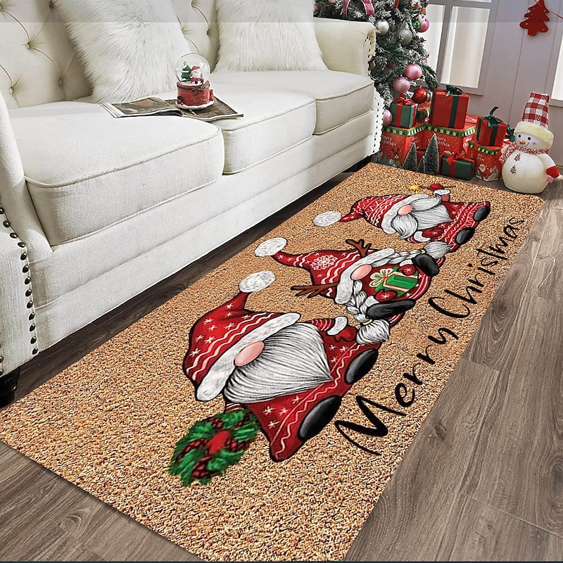 Christmas Decorations Xmas Area Rug Gnomes Non Slip Floor Mat Bedside Livingroom Bedroom Indoor Outdoor 12