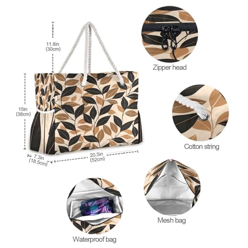 Beach Bag - Large Tote Bags for Women Leaves Shoulder Bags Zipper Waterproof Sandproof for Travel Gym Swim Daily 5