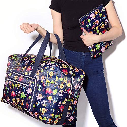HOT ! Large Foldable Duffel Tote Carry on Travel Bag over Luggage with Shoulder Strap, Blue Lion