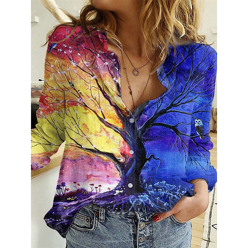 HOT ! Women's Shirt Button Down Tunic Shirt Collar Long Sleeve Hawaiian Graphic Floral Print Daily Weekend Tropical Vintage Regular Floral Holiday Clothes Black Pink