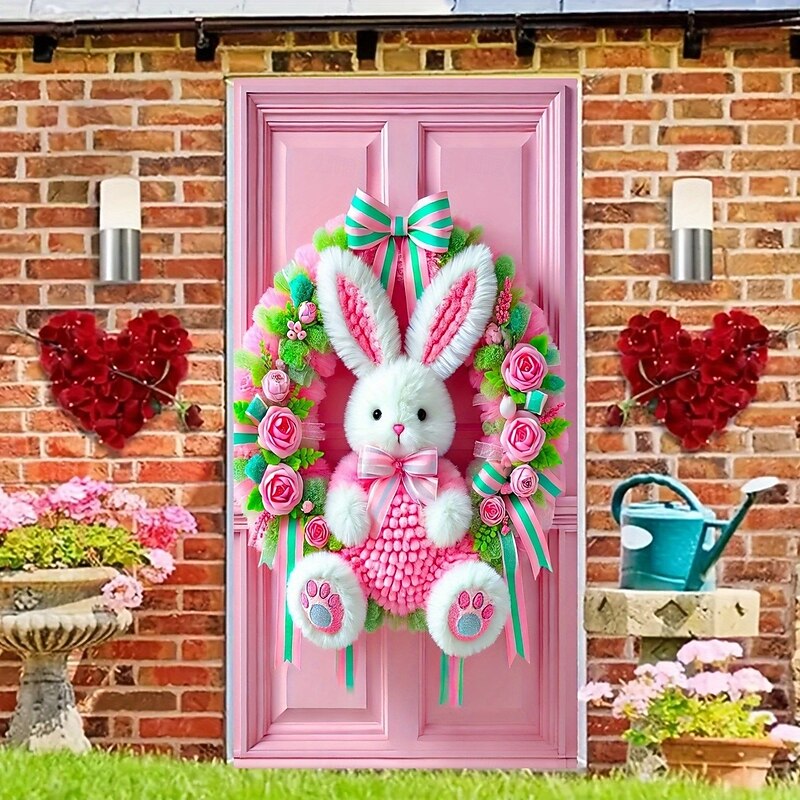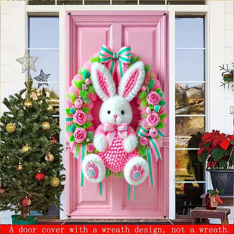 Door Decorations Door Covers Faux Wreath Door Tapestry Door Curtain Decoration Backdrop Indoor/Outdoor Door Banner for Front Door Farmhouse 17