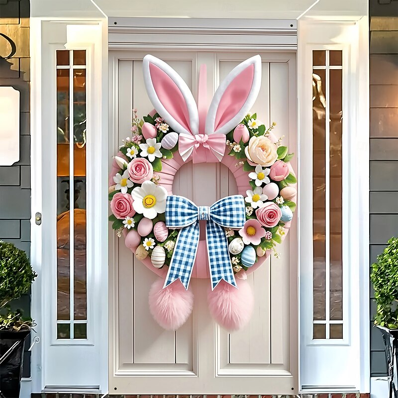 Door Decorations Door Covers Faux Wreath Door Tapestry Door Curtain Decoration Backdrop Indoor/Outdoor Door Banner for Front Door Farmhouse 8
