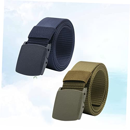 2 Pcs Adjustable Canvas Waist Belt for Men Lightweight Outdoor Training Band Plastic Buckle Exploration Webbing (Green Dark Blue) 1