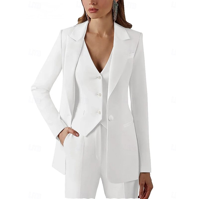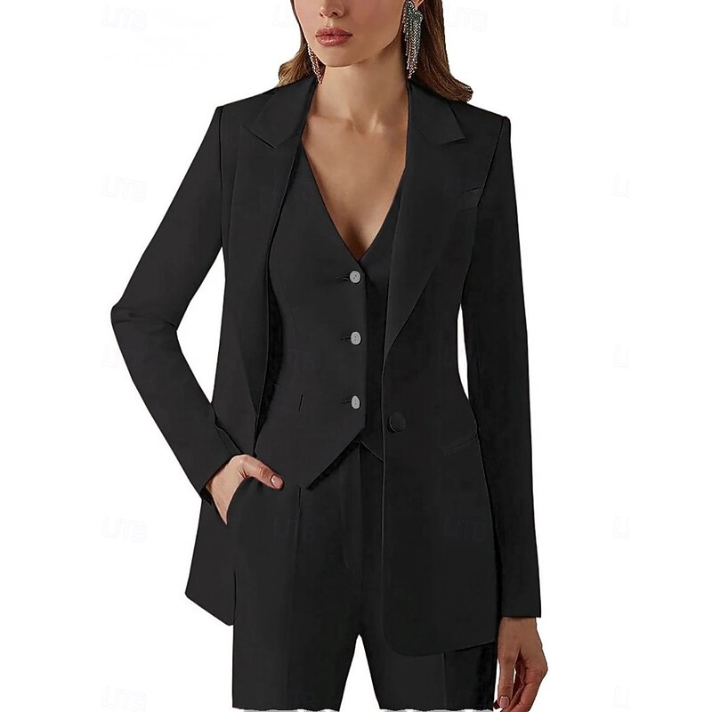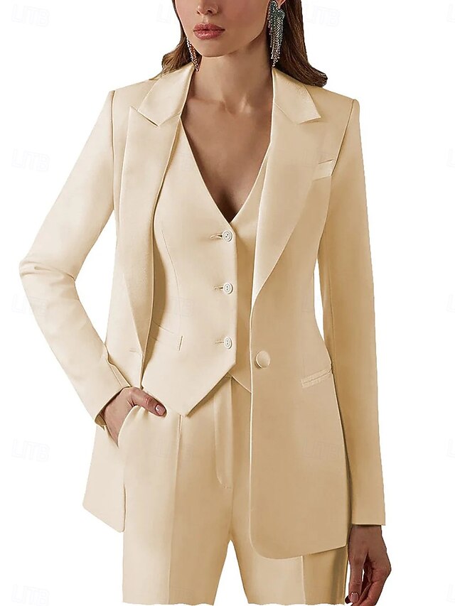 More information about Women's 3 Pieces Suits Formal Wedding Guest Stretch Crepe Elegant Vintage Simple Long Sleeve Floor Length Peak Lapel