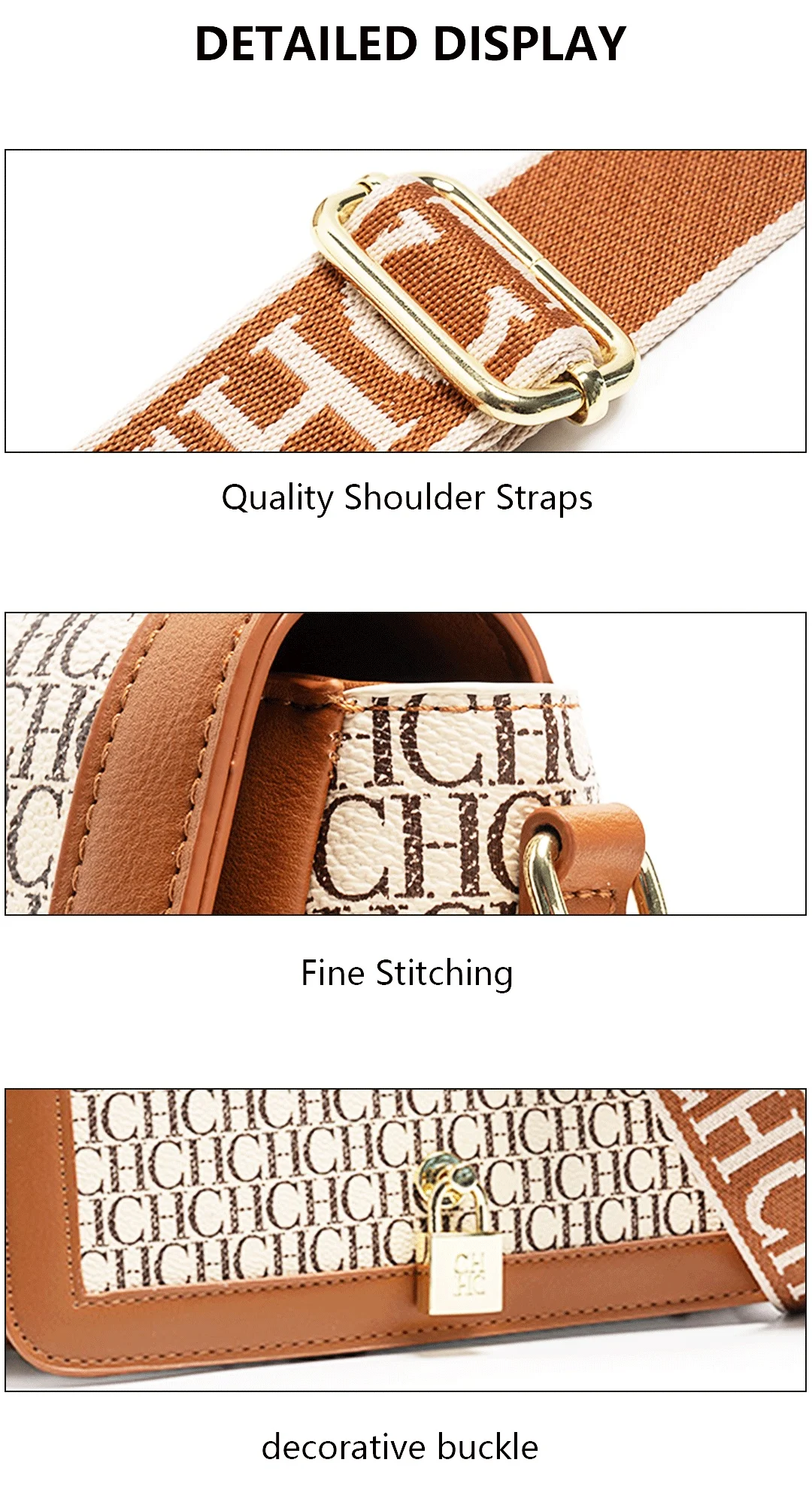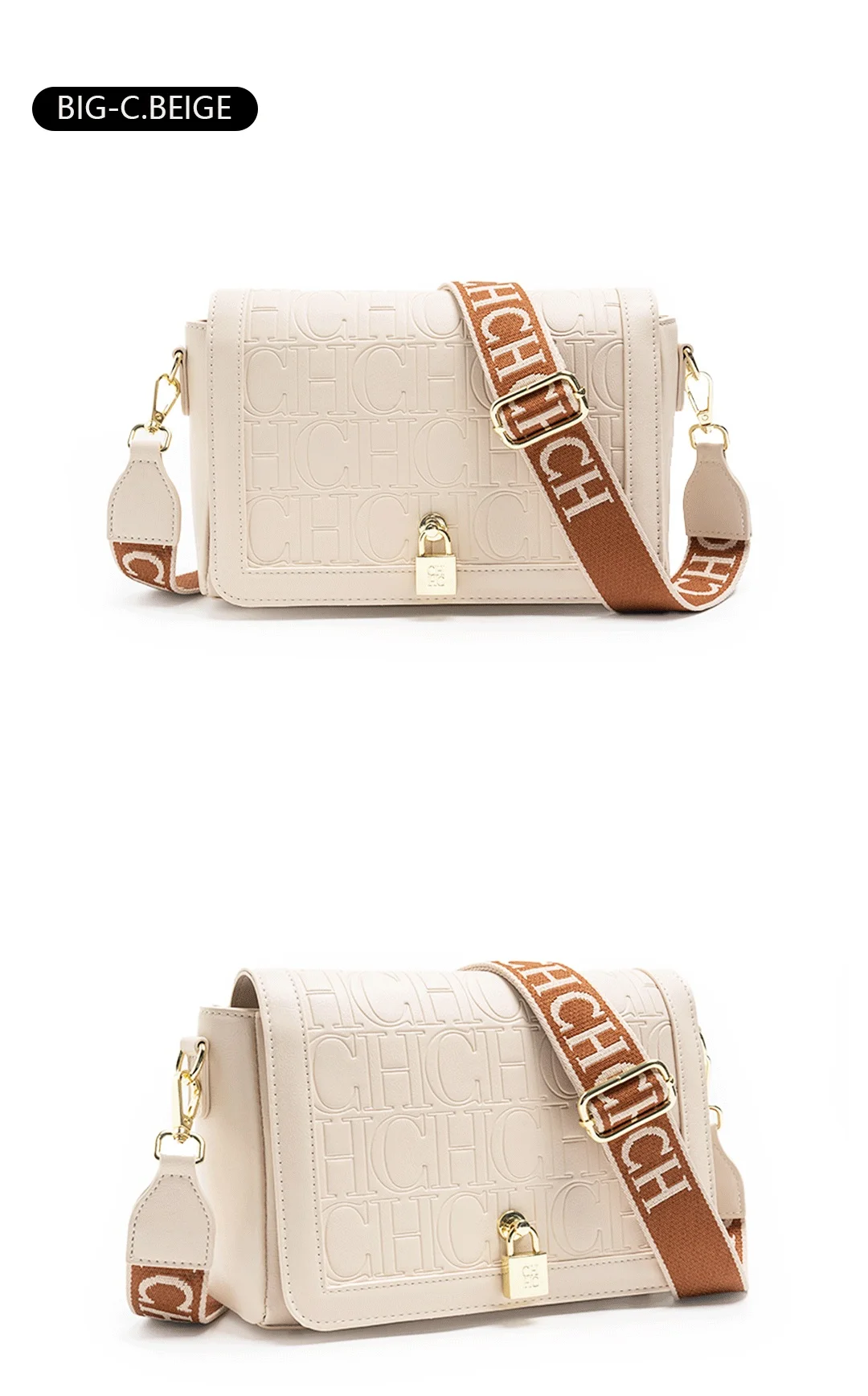 CH Women's Shoulder Bag Elegant Temperament Style Women's Crossbody Letters Embossed Printing Design Daily Women's Commuter Bag