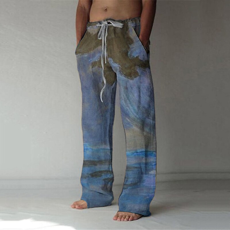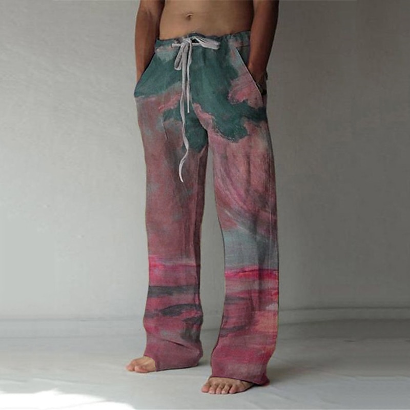 More information about Men's Trousers Summer Pants Baggy Beach Pants Elastic Drawstring Design Front Pocket Straight Leg Graphic Prints Landscape Comfort Soft Casual Daily For Vacation Linen Like Fabric Fashion Streetwear