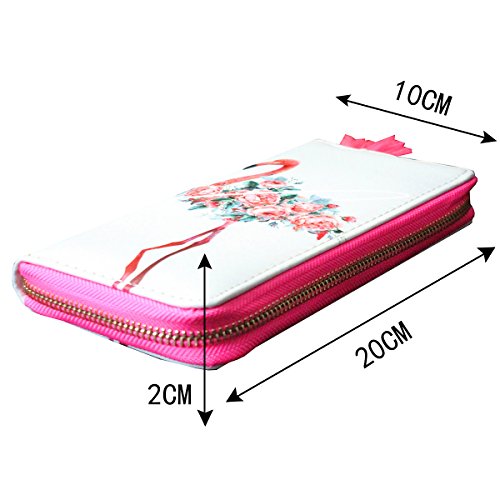 Timlee Cute Rainbow Unicorn Long Wallets Long Purse Flower Flamingo Wallet For Girls Christmas Gift Women with Pink Tassels(Flamingo White) 5