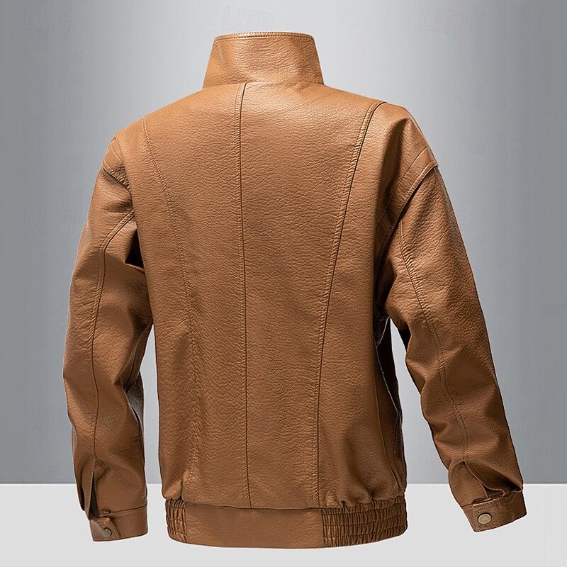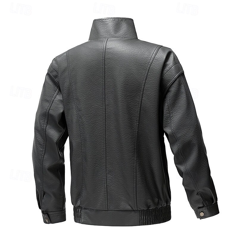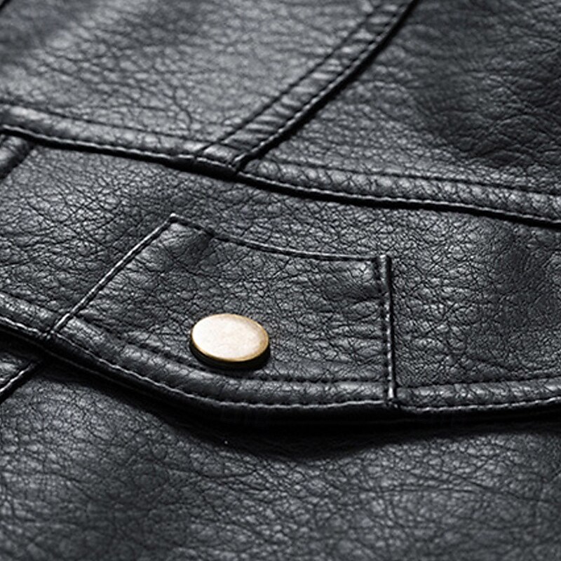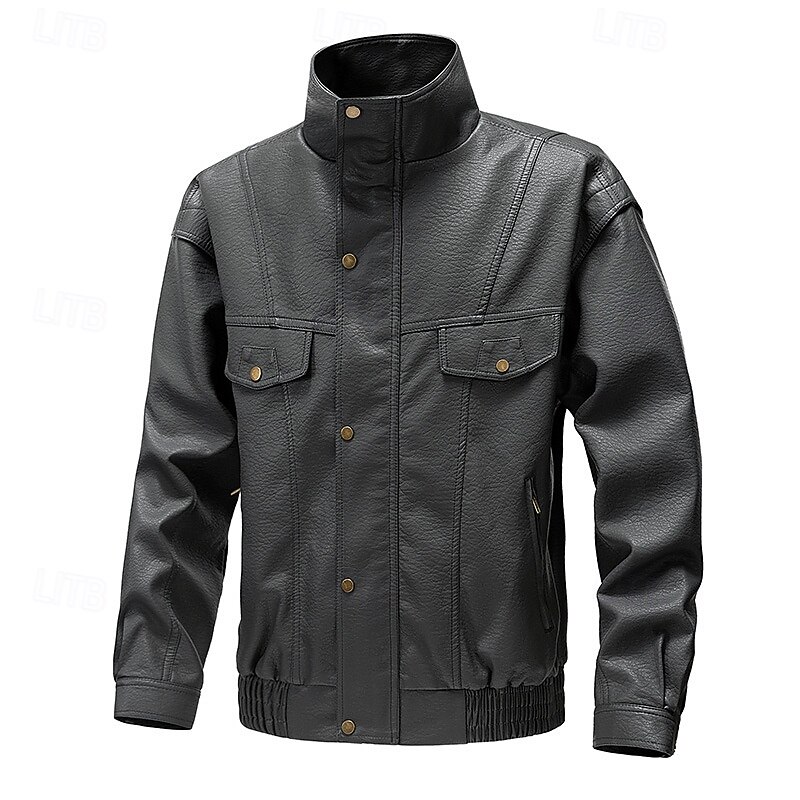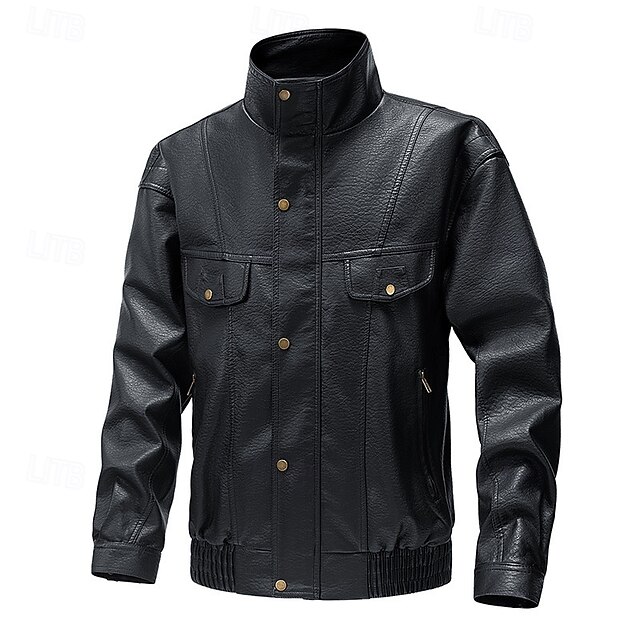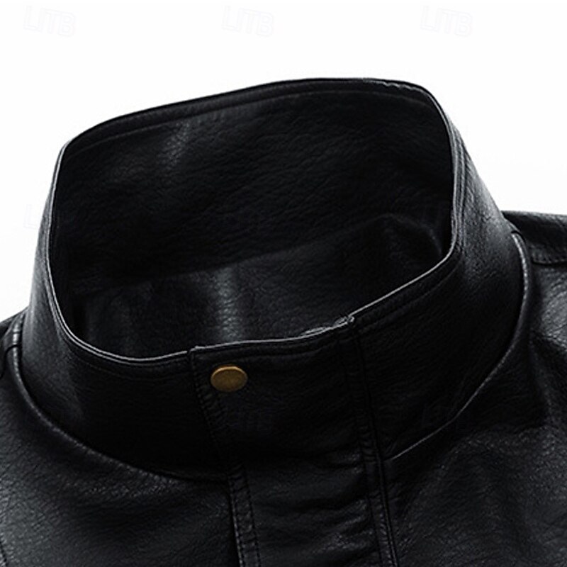 More information about Men's Faux Leather Jacket Biker Jacket Motorcycle Jacket Vacation Daily Windproof Warm Pocket Fall Winter Plain Fashion Classic Stand Collar Regular Black Yellow Gray Jacket