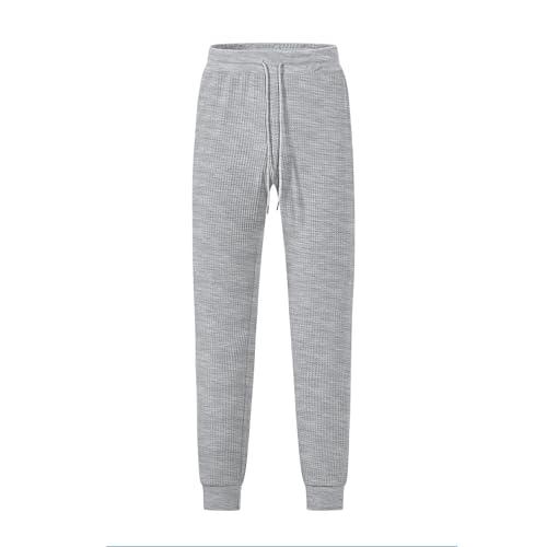 HOT ! Men's Waffle Pants Casual Elastic Waist Outdoor Running Athletic Trousers Solid Color Straight Legs Pockets Sweatpants