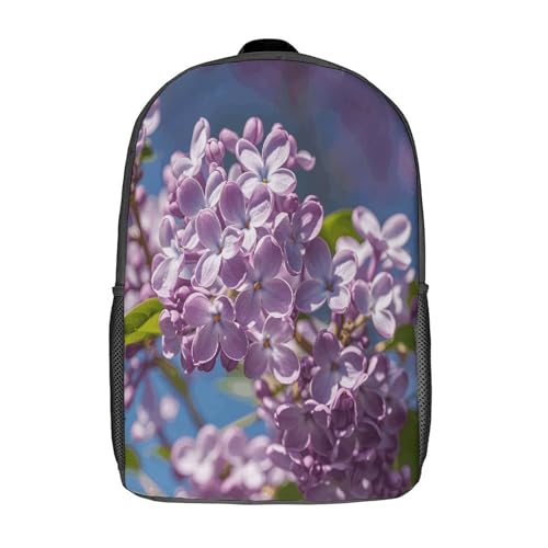 17 Inch Backpack Lilac Print Travel Dayback Shoulder Back Pack Carry On Backpack with Adjustable Shoulder Straps