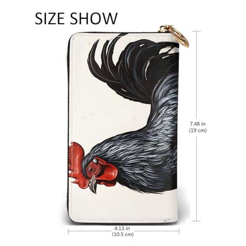Black Rooster Women Wallets Leather Zip Around Clutch Purses Waterproof Credit Card Holder With Phone Holder Ladies Travel Coin Purse 5