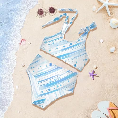 KLL Blue Stripe Girls' Two Piece Bikini Sets Quick-Dry Swimsuits Swimming Suits Adjustable Shoulder Strap 5