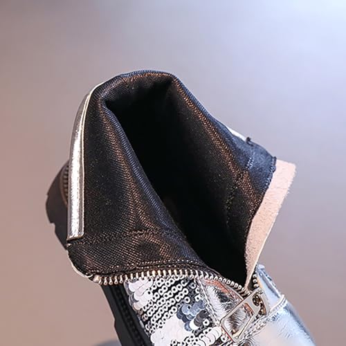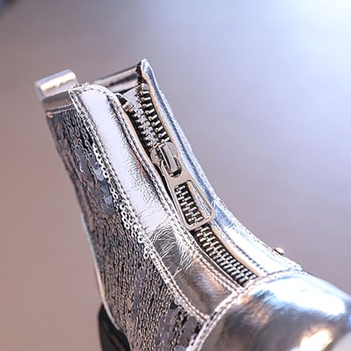 IWIHMIV Girls Ankle Booties Toddler Glitter Boots Girls Boots Kids Ankle Boots Comfortable Girls Zipper Booties Girls Short Boots 4