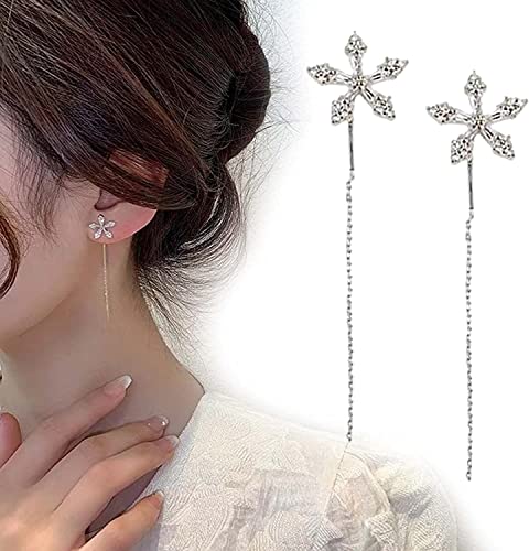 HOT ! Shiny Diamond Flower Earrings, Sparkling Crystal Flowers Silver Needle Tassel Earrings, Hypoallergenic,lead & Nickel Free, Adjustable, Gifts for Women Girls