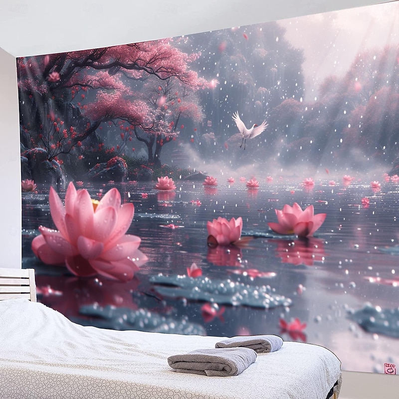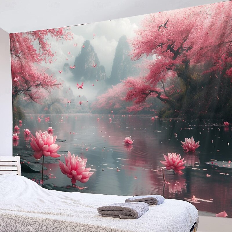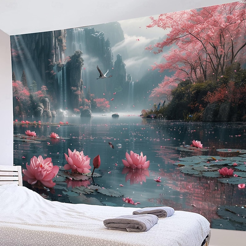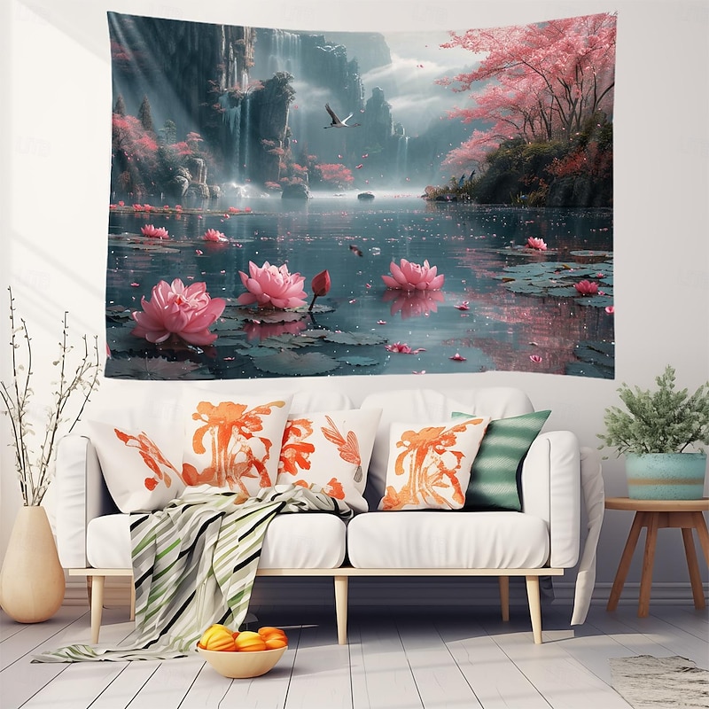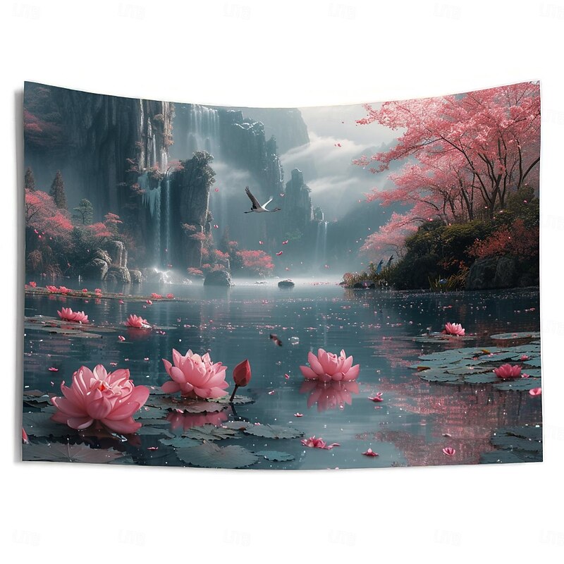 Lotus Pound Landscape Hanging Tapestry Wall Art Large Tapestry Mural Decor Photograph Backdrop Blanket Curtain Home Bedroom Living Room Decoration