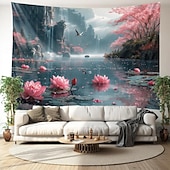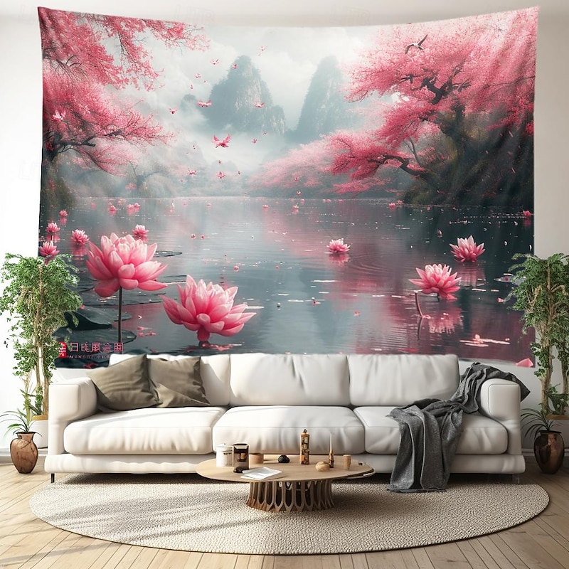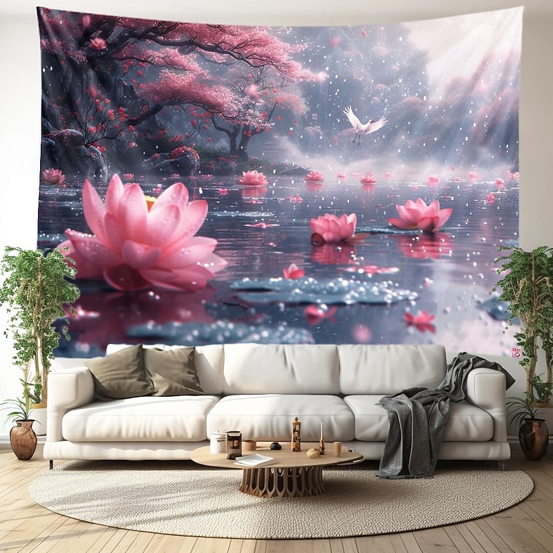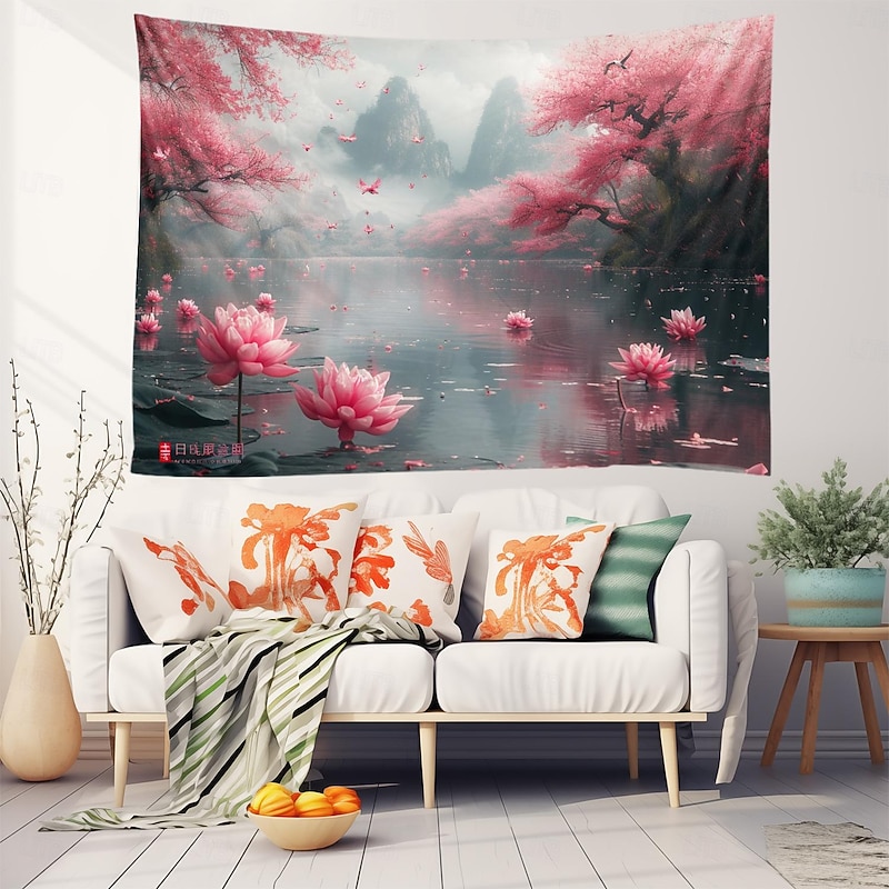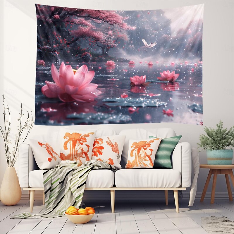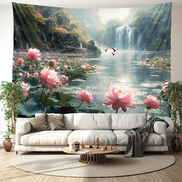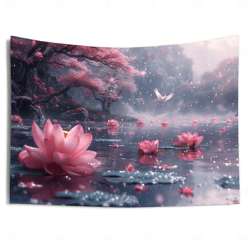 Lotus Pound Landscape Hanging Tapestry Wall Art Large Tapestry Mural Decor Photograph Backdrop Blanket Curtain Home Bedroom Living Room Decoration