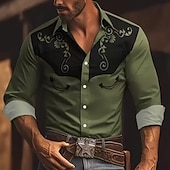 More information about Men's Floral Print Ethnic Scrollwork Shirt Western Shirt Cowboy Shirt Long Sleeve Vintage Retro Outdoor Vacation Spring Fall Turndown 3D Print Linen Like Shirt Army Green