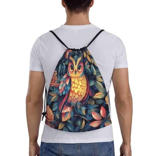 Drawstring Backpack Sports Gym Bags Draw String Bag for Women Men Color owl pattern Drawstring Bags Sackpack 5