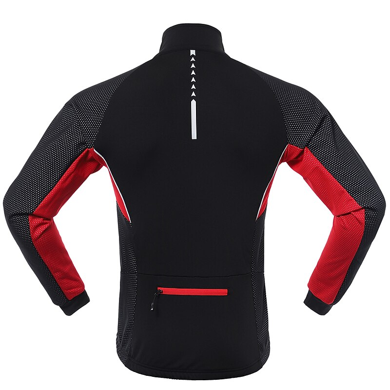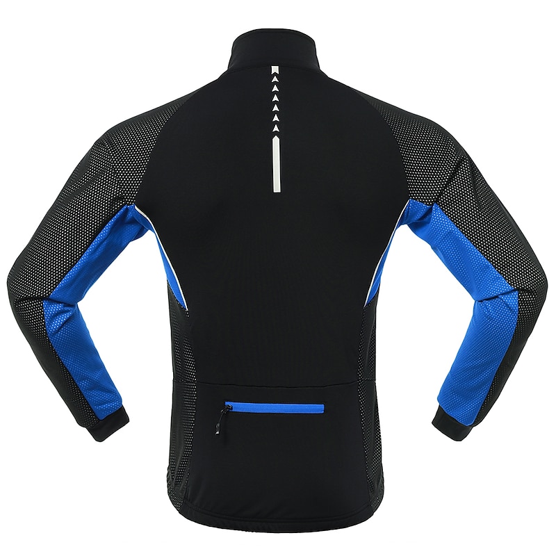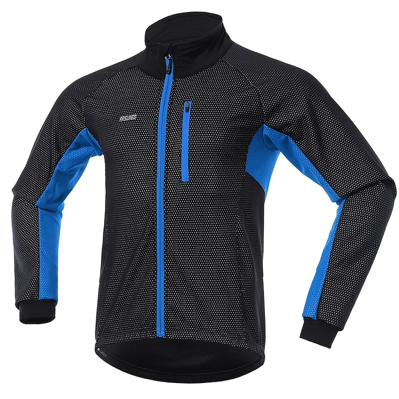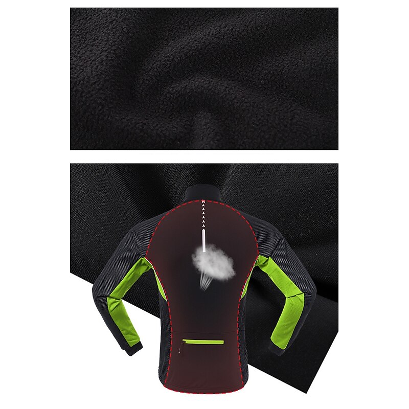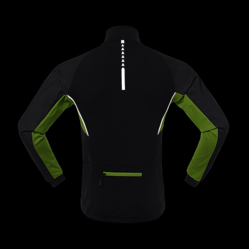 Highlights - Enjoy the cozy warmth provided by the brushed soft fleece interior, high cut collar, full length zipper, internal draft flap, and elastic cuffs when cycling outdoors in the winter. - Keep your belongings safe and accessible with one front chest zipper pocket and two rear pockets, plus large hand pockets to warm your hands up. Features zippers with easy-to-use pulls. - Ride in light rain and snow without getting soaked with the water-resistant and windproof material of this men's cycling jacket, complete with YKK zipper and stand-up collar to block out cold air. - Stay visible and safe in low light conditions with the reflective logo and stripes on the front and back of this jacket. Enjoy the comfortable fit of micro-elastic material and elastic cuffs that provide extra warmth and protection for your arms and wrists. - Take advantage of the long back hem and zipper pockets, which ensure a secure and comfortable fit while cycling. This windbreak coat is perfect for a range of sports, including cycling, running, hiking, and MTB in the fall, winter, and spring seasons.