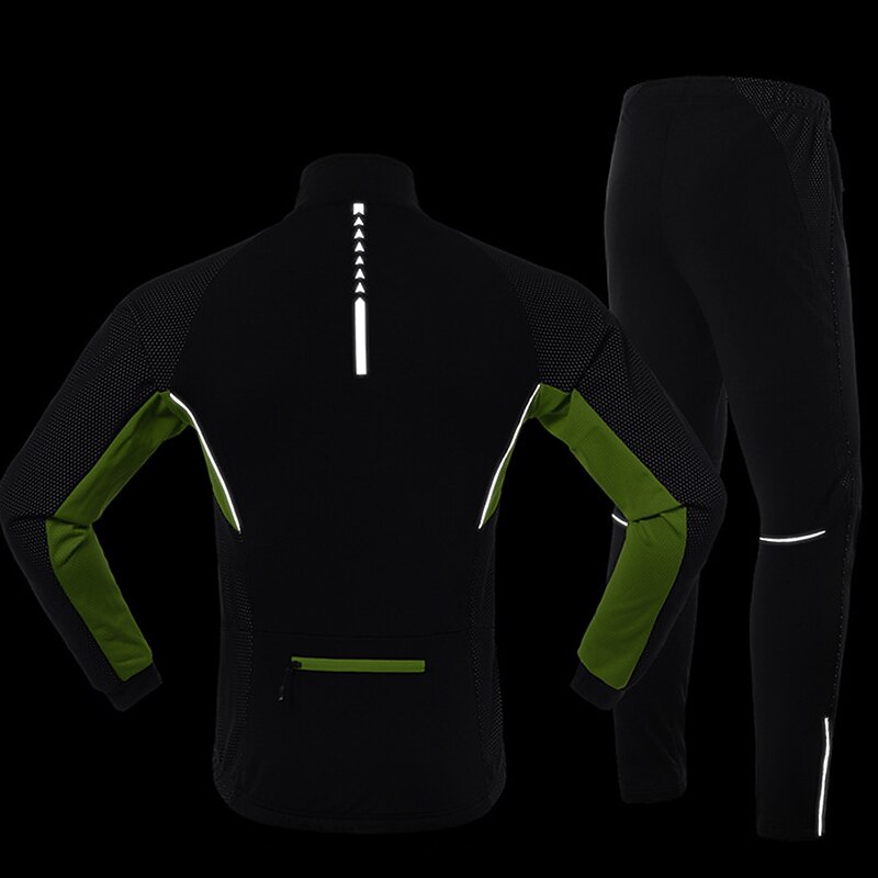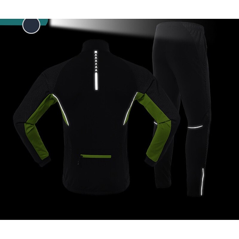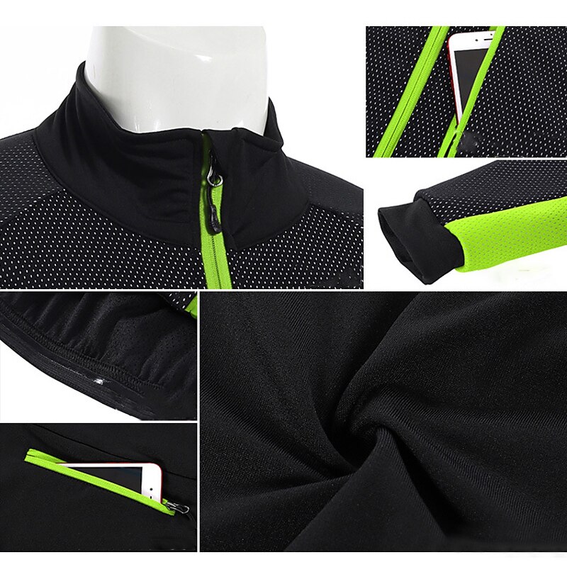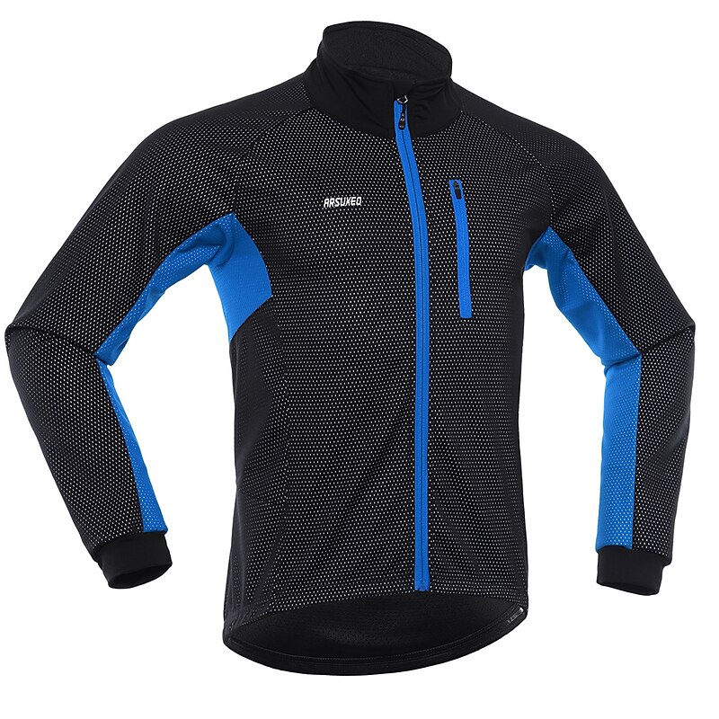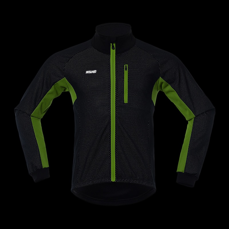 Highlights - Enjoy the cozy warmth provided by the brushed soft fleece interior, high cut collar, full length zipper, internal draft flap, and elastic cuffs when cycling outdoors in the winter. - Keep your belongings safe and accessible with one front chest zipper pocket and two rear pockets, plus large hand pockets to warm your hands up. Features zippers with easy-to-use pulls. - Ride in light rain and snow without getting soaked with the water-resistant and windproof material of this men's cycling jacket, complete with YKK zipper and stand-up collar to block out cold air. - Stay visible and safe in low light conditions with the reflective logo and stripes on the front and back of this jacket. Enjoy the comfortable fit of micro-elastic material and elastic cuffs that provide extra warmth and protection for your arms and wrists. - Take advantage of the long back hem and zipper pockets, which ensure a secure and comfortable fit while cycling. This windbreak coat is perfect for a range of sports, including cycling, running, hiking, and MTB in the fall, winter, and spring seasons.