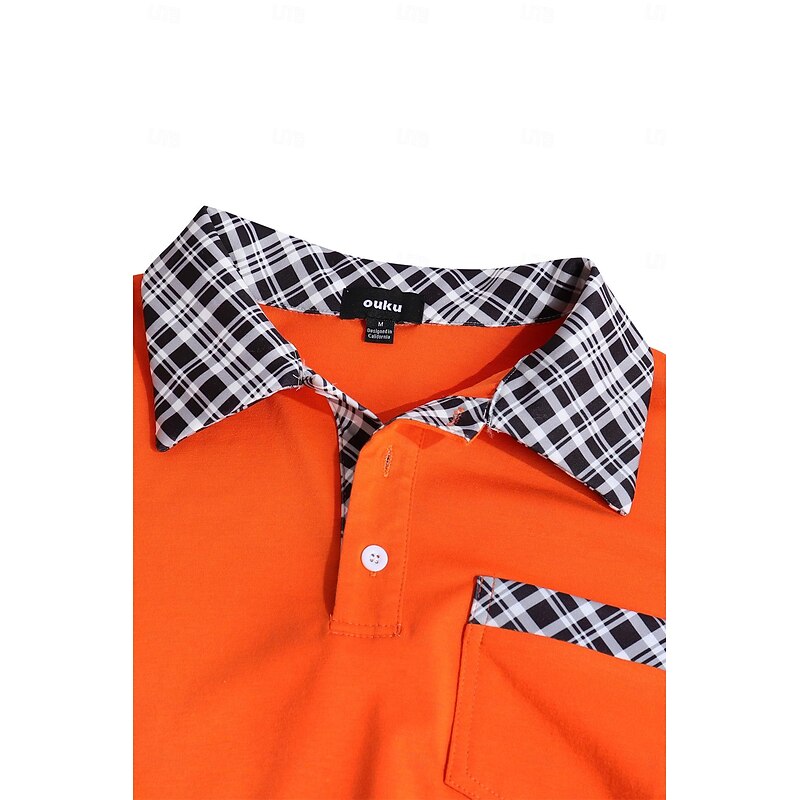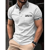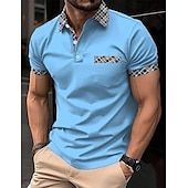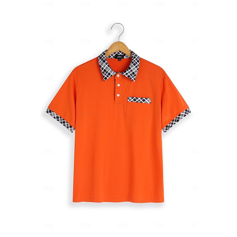More information about Men's Polo Shirts Golf Shirt Casual Holiday Lapel Short Sleeve Fashion Basic Plaid Color Block Patchwork Pocket Summer Regular Fit Light Blue White Orange Khaki Polo Shirts