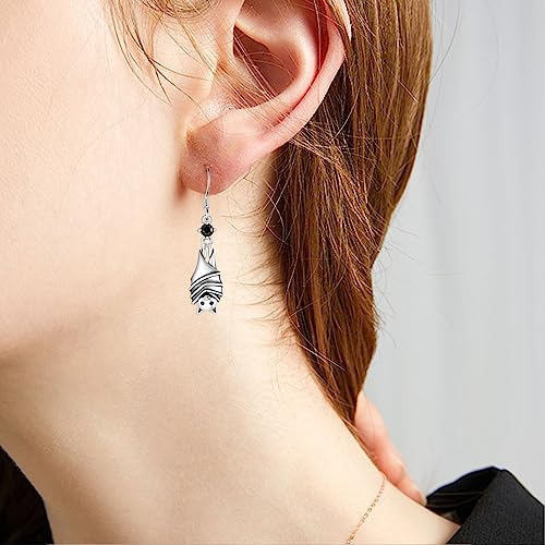 Gothic/Black Cat/Bat Earrings for Women 925 Sterling Silver Vintage Halloween Bat Black Cat Jewelry for Women 5