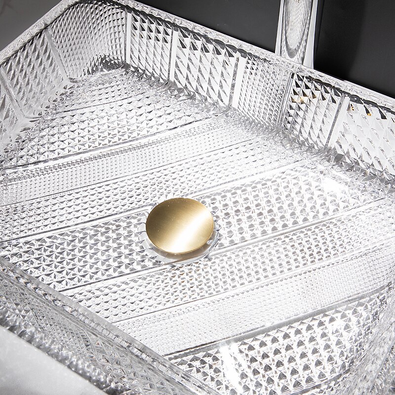The modern light luxury transparent art rectangular die-cast glass wash basin with faucet sink 1