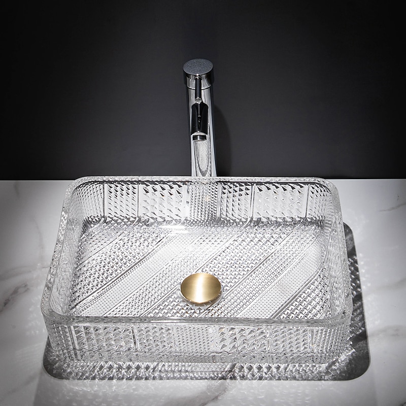 $333.79 - The modern light luxury transparent art rectangular die-cast glass wash basin with faucet sink 2025. Shop for cheap Vessel Sinks online? Buy at lightinthebox.com on sale today!