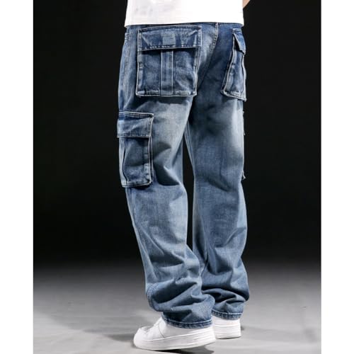 Mens Loose Fit Hip Hop Jeans Casual Cargo Denim Pants with Multi Pockets 6
