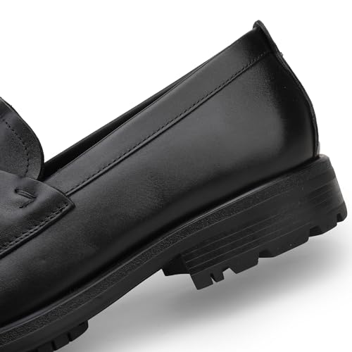 Mens Classic Leather Dress Shoes, Fashion Buckle Slip-on Penny Loafer Party Shoes Wedding Loafers for Mens 6