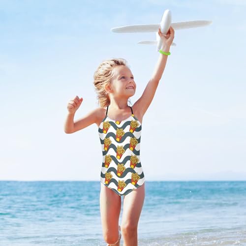 French Fries Girls One Piece Swimsuits Stripe Sport Halter Swimwear Beach Bathing Suit 7-8T Multi 6
