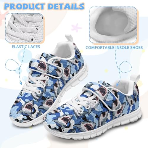 Kids Shoes, Boys Girls Sneakers Lightweight Athletic Walking/Running Tennis Shoes(Little Kid/Big Kid) Shark Camouflage Pattern(White Sole) 3