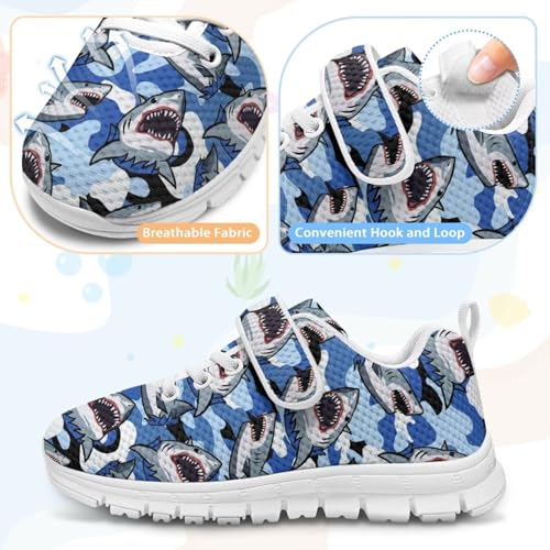 Kids Shoes, Boys Girls Sneakers Lightweight Athletic Walking/Running Tennis Shoes(Little Kid/Big Kid) Shark Camouflage Pattern(White Sole) 5