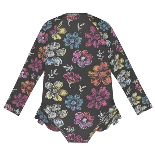 Cartoon Coloring Flowers Girls Long Sleeve Swimsuits One Piece Zipper Bathing Suit UPF 50+ Rashguard Swimwear 6
