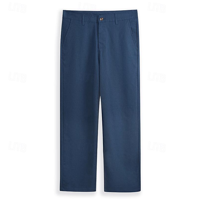 Men's Linen Pants Trousers Dress Pants Summer Pants Beach Pants Front Pocket Straight Leg Plain Comfort Breathable Formal Business Holiday Fashion Basic Black White 23