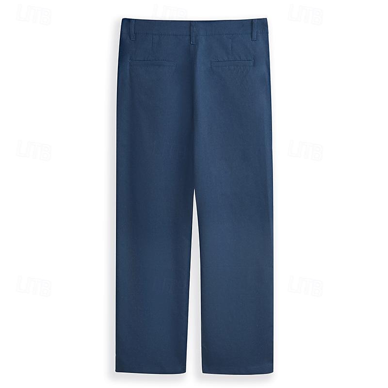 Men's Linen Pants Trousers Dress Pants Summer Pants Beach Pants Front Pocket Straight Leg Plain Comfort Breathable Formal Business Holiday Fashion Basic Black White 25