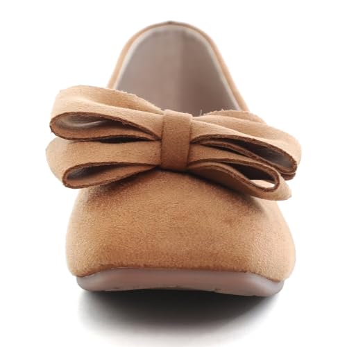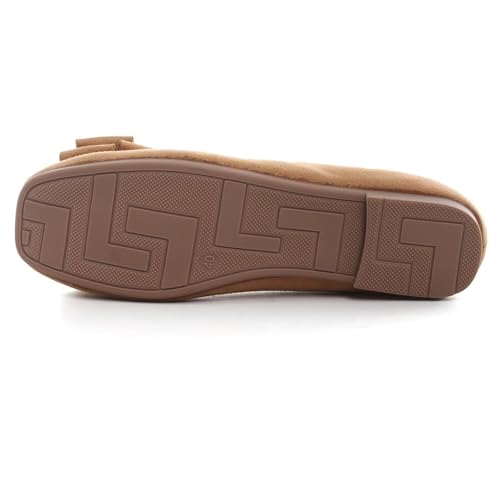 Hee grand Bow-Knot Ballet Flats Womens Square Toe Flat Shoes Suede Dress Shoes Casual Light Weight Slip-On Loafers 5