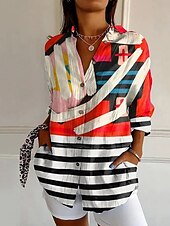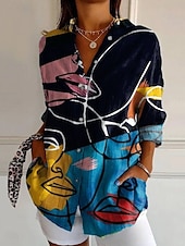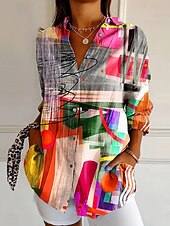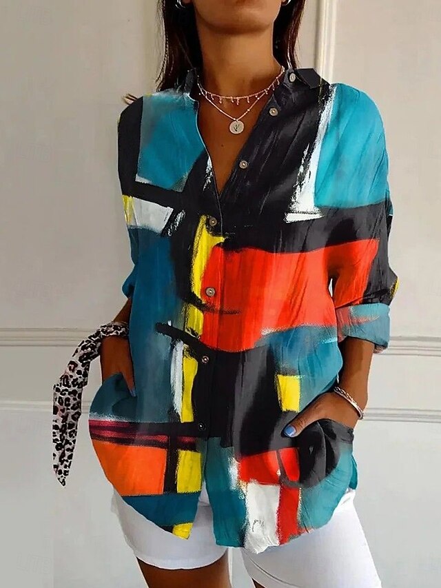 More information about Women's Shirt Graphic Geometric Abstract Vintage Daily Casual Long Sleeve Shirt Collar Regular Tops Daily Holiday Print Black Pink Red Blue Summer Spring