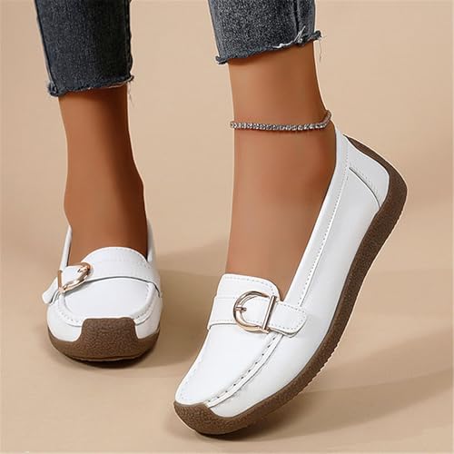 HOT ! CLSQLXYJZC Womens Casual Non-Slip Slip-On Breathable Leather Walking Wedge Moccasin, Comfortable Soft Bottom Non Tiring Feet Nurse Working Loafers Shoes, for Medical Workers