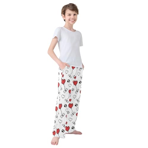 Red Heart Bone Dog Boys Pants for Kids Jogger Pants with Pockets S-XL 6