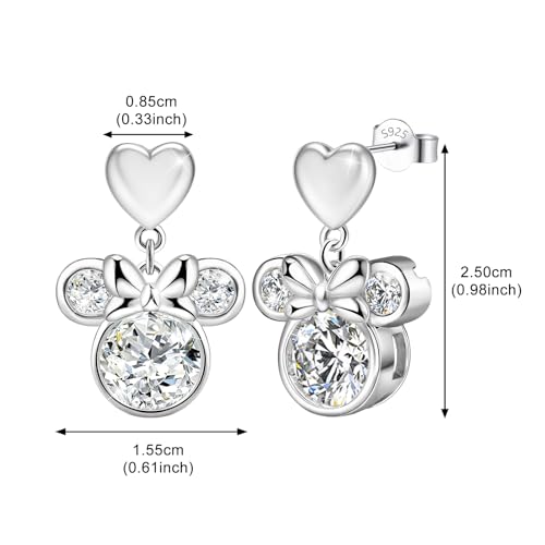 HOT ! Heart Mouse Earrings for Women- Sterling Silver Cute Animal Stud Earrings Heavy Hypoallergenic Cubic Zirconia Adorable Dainty Bow Mouse Post Earring Jewelry Gifts for Teens Daughter Granddaughter