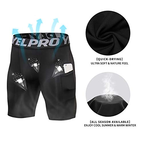 SPVISE Compression Shorts Men 1/3 Pack, Dry Fit Compression Underwear Spandex Running Shorts, Workout Athletic Shorts Pocket 4