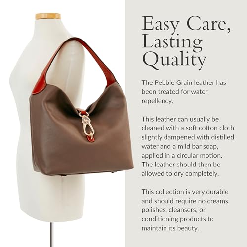 • SIGNATURE DETAILS: This handbag has a wide shoulder strap and the main compartment features a signature doublesided Dooney & Bourke logo lock closure with a zipper pocket, slip pocket, cell phone pocket and key hook inside. Dimensions are 12.5" L x 5.25" W x 11.5" H. Strap drop length is 8".